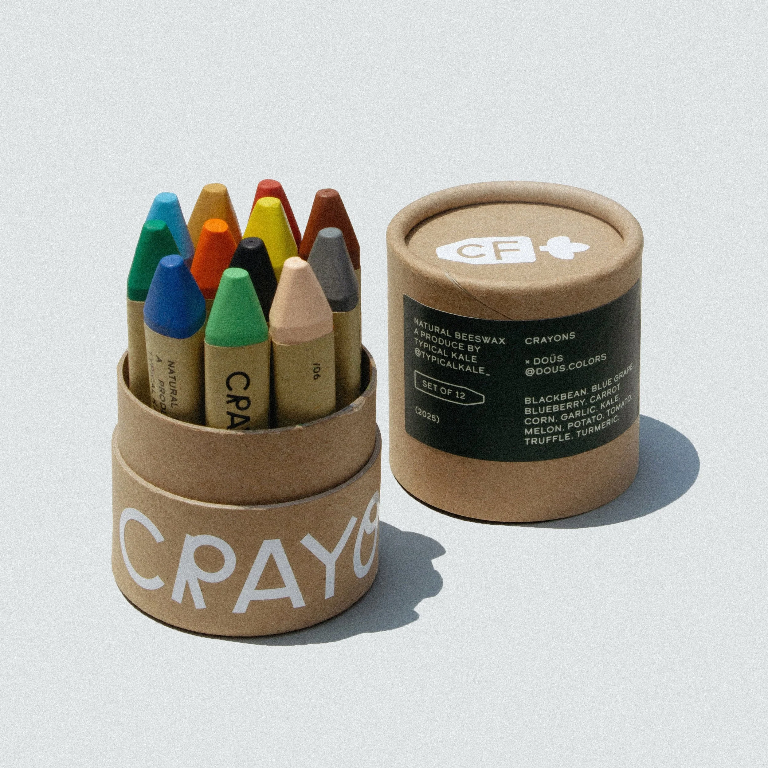 12 natural beeswax crayons inspired by the freshest crops.